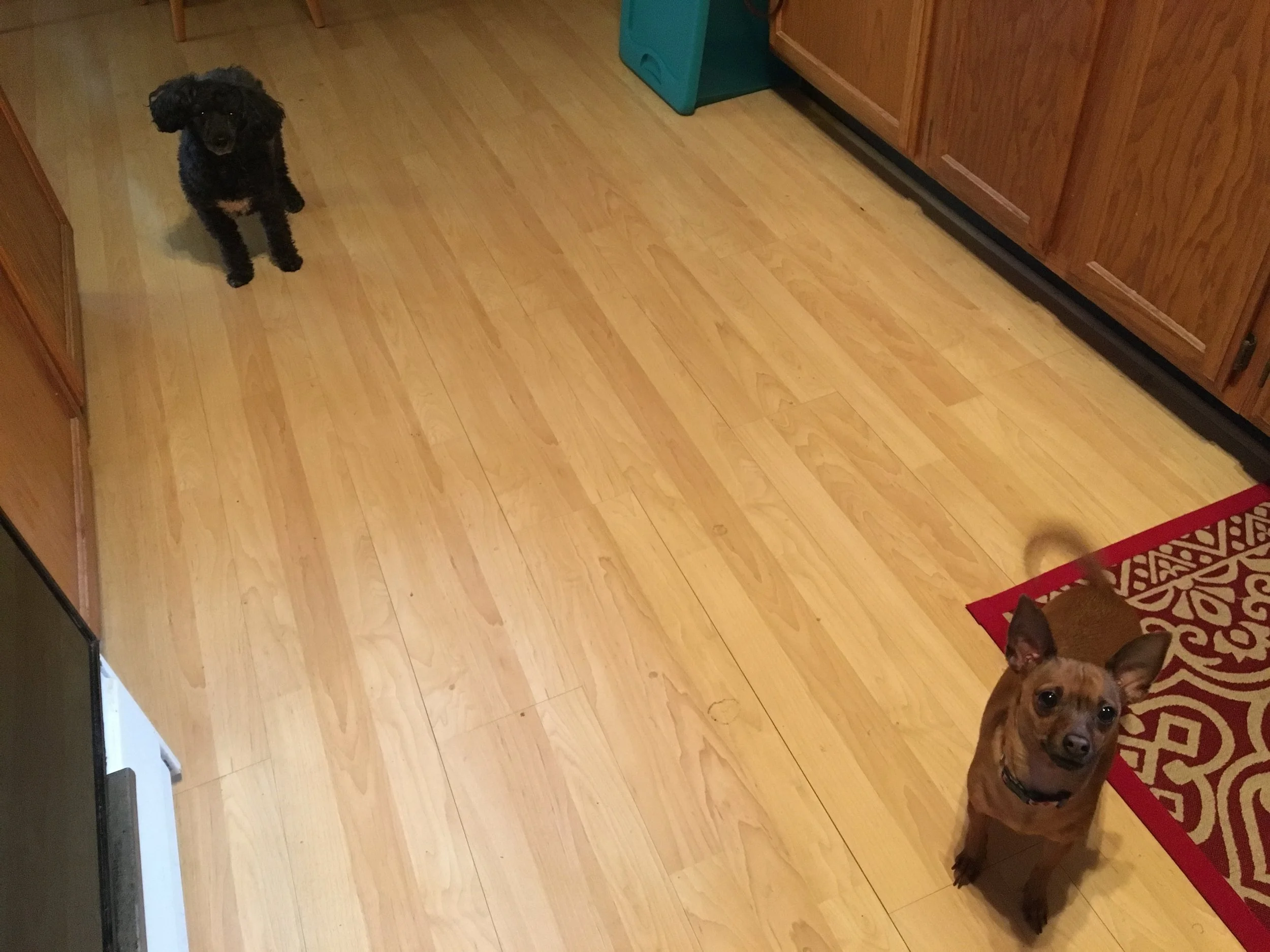 Sign #1: tag-team begging. Penny was here less than hour before I started making dinner. I fed both dogs first and then began preparing my own meal. I was closely supervised the whole time. I suspect I will never cook or eat alone again.